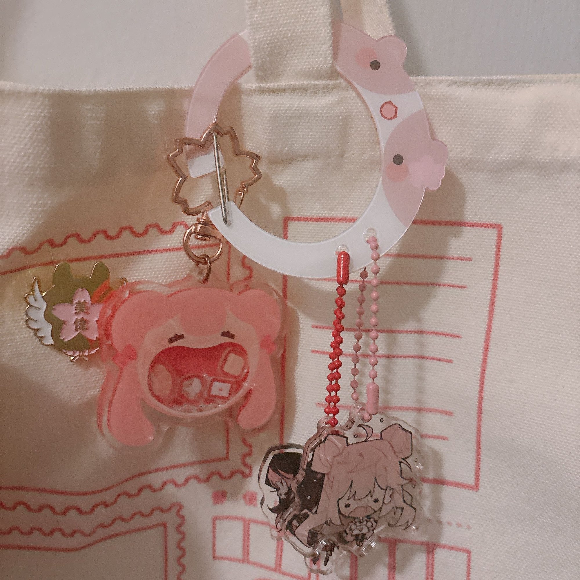 Potabun would be happy to hold all your charms for you! This specially designed carabiner can clip onto any bag and display your favorite charms, keys, or any plushy. Small charms can loop into the small heart-shaped holes, and any large keychains can loop onto Potabun.